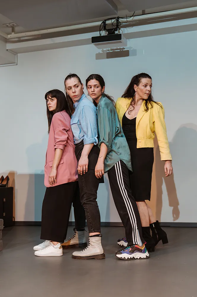 Οι ηθοποιοί φέρουν τα λόγια και τις εμπειρίες συνεντευξιαζόμενων γυναικών από διαφορετικούς τόπους της Ελλάδας, σε έναν εξαιρετικά ανοίκειο και «ψυχρό», «υπό κατασκευή» χώρο. Δεν βολεύονται. Μέσα σε αυτόν αναζητούν τη θέση τους˙ γι’ αυτό τον οικοδομούν και τον μεταμορφώνουν. Συνομιλούν με τα σκηνικά υλικά και δημιουργούν συμβολικές εικόνες, «γλυπτά», χάος και τάξη.
